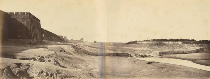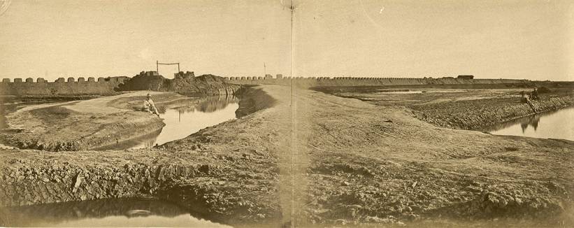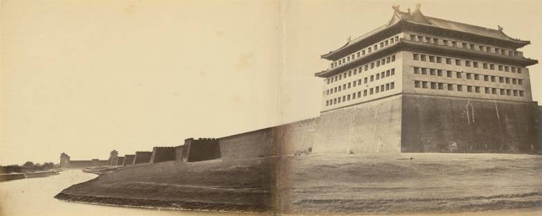 除了洞察力与审美,比托另一种独特的摄影语言让他脱颖而出:全景摄影。在1860年,操作湿版相机,调动8×10英寸画面,精准的分段拍摄,全世界却极少有人能掌控并形成规模与风格。两张拼接的全景“北京东城墙及东北角”,画面极具震撼力,护城河与城墙呈现的透视,显示出北京城的宏伟。