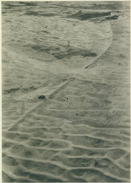 阿拉善盟西侧的长城几乎要被沙漠吞噬了。照片中,依稀可以看到长城的走向,中部是烽火台。