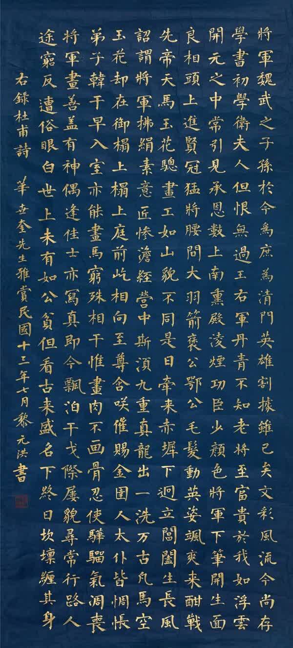 5、《丹青引赠曹将军霸》是唐代诗人杜甫的作品。此诗开头四句统摄全篇。接着写曹霸在书画上的师承渊源,进取精神,刻苦态度和高尚情操。“开元”以下八句,转入主题,高度赞扬曹霸在人物画上的辉煌成就。“先帝”以下八句,诗人细腻地描写了画玉花骢的过程。“玉花”以下八句,诗人进而形容画马的艺术魅力。最后八句,又以苍凉的笔调描写曹霸流入民间的落泊境况。作者以诗摹写画意,评画论画,诗画结合,富有浓郁的诗情画意,把深邃的现实主义画论和诗传体的特写融为一炉,具有独特的美学意义。