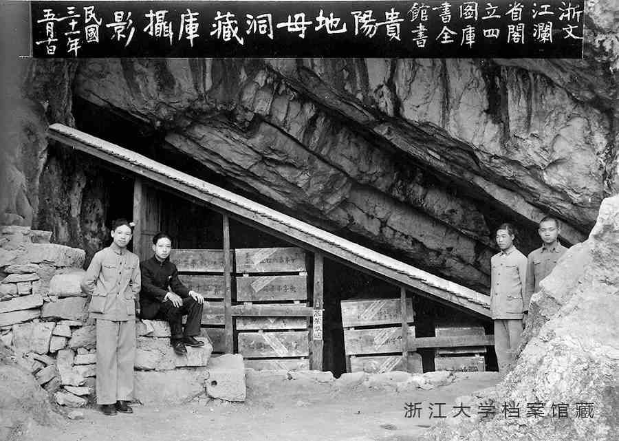 更有西迁风雨:抗战时民族文化瑰宝文澜阁《四库全书》,浙大竺可桢派出专人将存于杭州文澜阁的一部《四库全书》140箱一并运走,1939年移至贵阳地母洞(现黔灵山公园北)存放,保护完好。先是每年一次晾晒,后又改为春秋两次晾晒,持续6年,直至抗战胜利后运回杭州。
