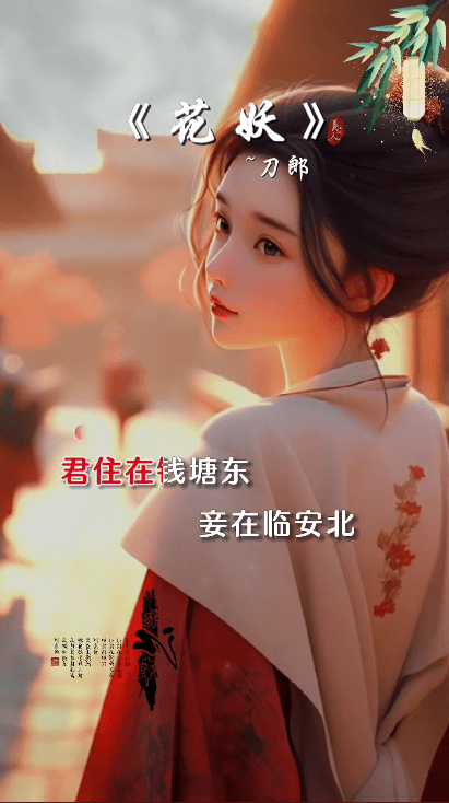 花妖:是刀郎演唱的歌曲,发行于2023年7月19日,收录于专辑《山歌寥哉》中。歌词有:君住在钱塘东,妾在临安北。君去时褐衣红,小奴家腰上黄。寻差了罗盘经,错投在泉亭。奴辗转到杭城,君又生余杭。