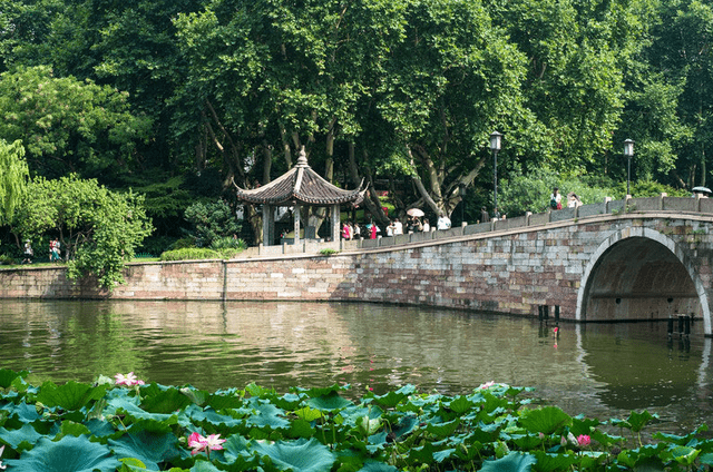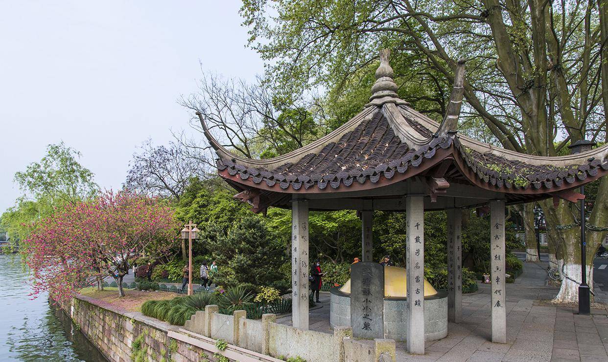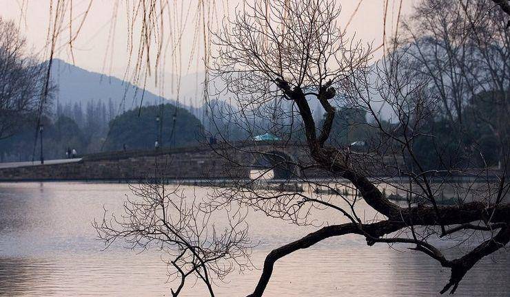 站在浙江杭州西湖的西泠桥上,既可近眺里湖,又可远瞩外湖;既在孤山之西,又可通往北山,白堤近在咫尺,苏堤又隐约在望,不仅地理位置好,而且古迹韵事,令人怀想。因为这里过去(在宋代以前)不叫“西泠”而叫“西林”或“西村”,古时有“西村唤渡处”大约是桥还没有造好。宋代郭祥正有《西村》诗道:“远近皆僧舍,西村八九家。得鱼无卖处,沽酒入芦花。”可见这里当时只有村民数家,而湖中也未遍种荷花,而是满眼如雪的芦花。后来桥筑成了,明代陈贽就有诗说:东风客每携壶过,落日人还唤渡无?最有春来狂可玩,桃花千树柳千株。(《西林桥》)不过,这时候的桥,还有些古色古香,简朴可爱,但到明末李流芳时,桥已改筑,而且人们习惯称它为“西泠桥”了。