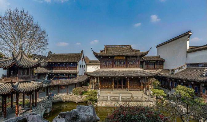 入迷宫、山水张扬:峭壁假山,亭台楼阁,小桥流水,仿佛进入了一座巨大的迷宫。