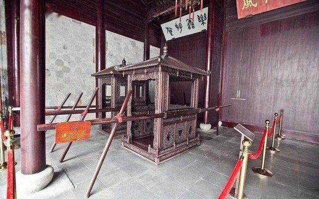 轿厅:进得故居门来,是高高大大的门楼;过了门楼,是宽宽绰绰的轿厅。轿厅,是客人停轿等候接见的地方。五开间的轿厅,十分敞亮,两个八抬大轿束之厅堂。厅里,在那里停了下来,放下了轿子。特别需要介绍的是,这里的木材是银杏木。因为银杏木生长非常缓慢,差不多十年才长1cm,所以这些柱子都有1000多年的历史了。