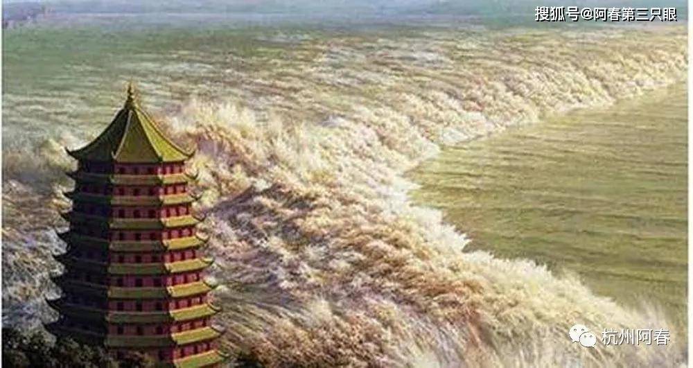 吴越王钱镠见潮水冲击,命令弓弩手张弓射潮,潮水因此后退。后遂用“钱王射潮、射潮、射涛、潮头弩、涛头弩”等指此事,或写勇武之举。