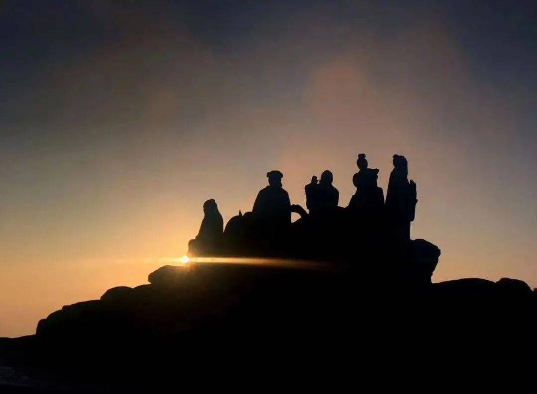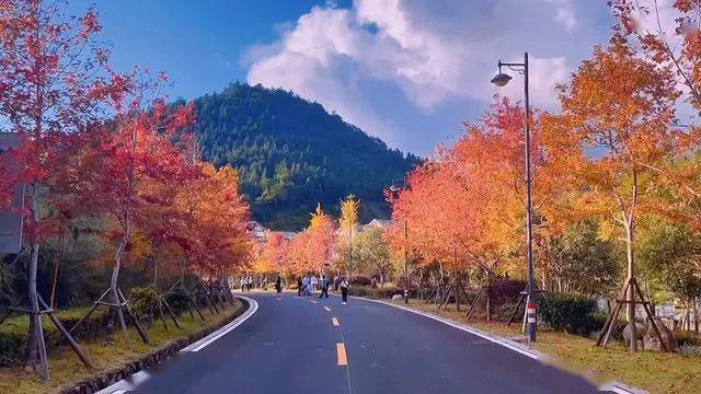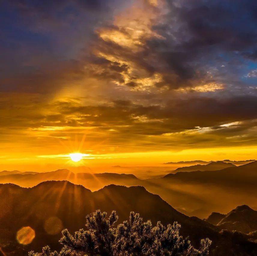 驱车蓬莱境,直达九仙乡。日升金顶,蓝天云海鸟翱翔。唐柱斑斑苔迹,千载甘泉不断,灵鹫沐祥光。古道铺红叶,秋色嗾人狂。