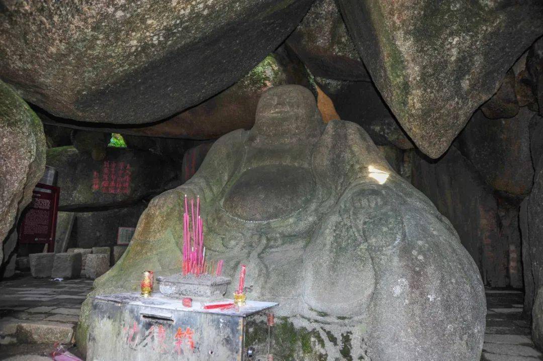 实际上:(弥勒洞是一天然石室,中为一趺坐弥勒佛。高达2.7米,宽约3米,底座周长约8.9米,腆肚,肥脸,双耳垂肩,一手执布袋,一手持珠,神态生动,衣褶流畅。《德化县志·古迹志》(乾隆版)载:俗传,石故像果老,日有群仙奏广乐,无比厌之,改雕弥勒,仙乐遂绝。从中可知,早在清代乾隆年间即有此石像,相传为唐代邹无比所雕。传说的准确性,有待考证。从现有记载来看,以布袋和尚契此为原型塑成弥勒佛供奉的,最早是北宋崇宁三年(公元1104年)浙江宁波的岳林寺。另外,邹无比一个出家人,而非雕塑大师,隔行如隔山,要雕出如此流畅传神的石刻造像作品,真要借助法力。)