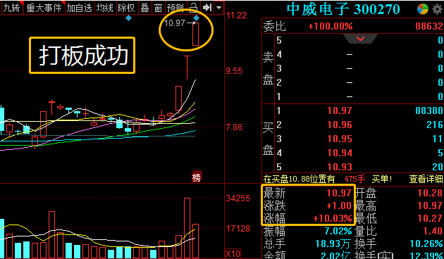 个股方面:昨日盘之感给大家点的中威电子符合打板要求,喜获一个涨停板,恭喜有把握到的朋友。