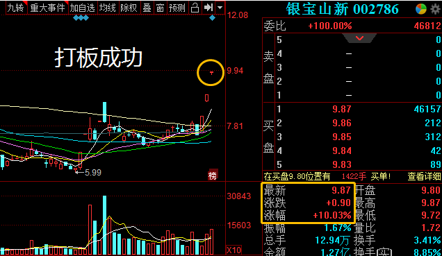 个股方面:上周五盘之感给大家点的银宝山新符合打板要求,买入打板成功,恭喜有把握到的朋友。