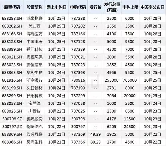 2. 本周IPO发行还在加速中,10月21-25日A股市场将迎来17只可申购个股。其中包括1只主板个股、2只创业板个股,以及14只科C板个股。