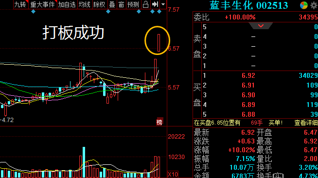 个股方面:上周五盘之感给大家点的蓝丰生化符合打板条件,买入打板成功,恭喜有把握到的家人朋友!