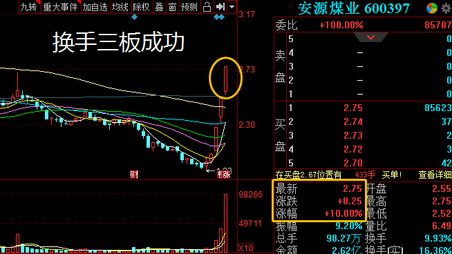 个股方面:上周五盘之感给大家点的安源煤业(600397),换手三板成功,符合打板条件,恭喜有把握到的家人朋友!