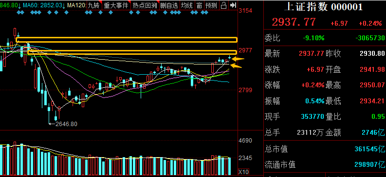 盘面上,光刻胶、OLED、5G等科技板块冲高回落,涨幅居前的是矿业开采、海南等板块,表现都不是很强势。整体看,高位股持续退潮,板块加大分化是当前的真实写照,而市场观望情绪较浓,需等待资金重新选择市场主线。盘之感认为,大盘上方顶着两道缺口压制,一道是2950~2970区间,还有一道是3000~3030区间,而昨天跳空后又新添一道下方缺口,这个非强势的消耗性缺口有待回补,预计今天就有回补的可能,但不影响中短期震荡走高的趋势。
