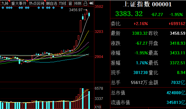 那么上涨行情戛然而止了吗?答案是否定的!没有只涨不跌的股市,短期连续逼空反而限制了趋势动能。只有适当回踩下方支撑才有望重新获得上升动力的持续支持。正所谓千金难买牛回头!另外,从历史经验来看,在成交量持续突破一万亿之后,行情突然转弱的可能性不大。市场的隐含波动率会下行,但不会突然向下,还会维持在高位一段时间。所以,本周的结构性机会依然存在。回看上周五市场,沪指受权重影响全天弱势,深成指、创业板指则维持震荡,并创趋势新高。盘面上,大小指数明显分化,两市量能小幅收缩,市场赚钱效应有所减弱,但仍保持1.5万亿水平,逾150只股涨停。说弱不弱,展现了积极的一面。综合来看,上周五属于良性调整,本周初期看大盘能否借政策打压做出下影线,暂且看3327-3457点的区间震荡,创业板则注意下高位大幅波动。不过牛市不惧利空,只要量能维持,那就继续有量有行情,看好企稳后的持续趋势上涨。