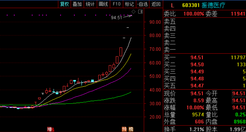 振德医疗:这个走势靓丽吗?启动的时候就说过这票炒作业绩,到上周出业绩直接爆炸顶一字板,这波起来已经3.5倍了,用时1个半月不到,这几天疫情股因为业绩爆棚大涨的不少,上周五盘面英科医疗也出业绩预告大涨,本周看看会不会大单一字板,一字板的话会继续刺激这个板块走高,目前知道业绩会爆棚的票不少,埋伏着吃大肉应该没问题。病毒防治方向很好赚钱,继续关注即可。九安医疗:低市值医疗器械股,今天留意绿盘低吸机会。宝莱特:今天留意换手板机会,只考虑打板。