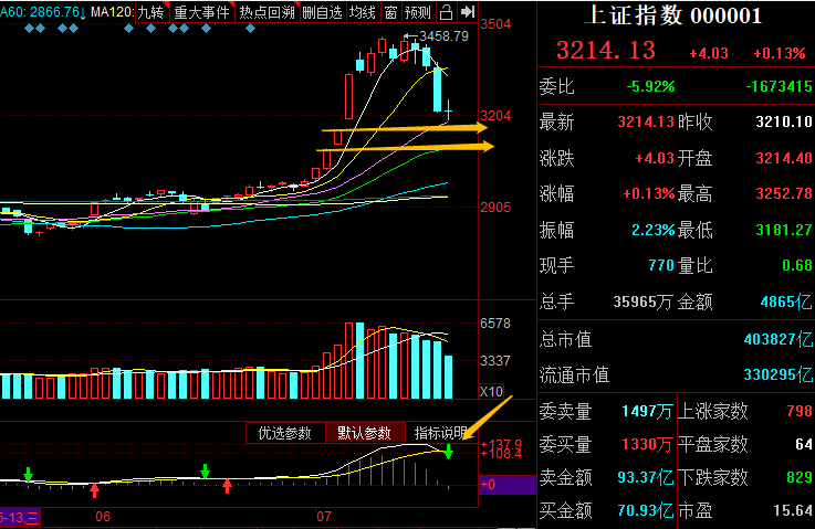这是沪指的日线图,我们看到第一个缺口,也就是20日均线暂时是得到了支撑,但是目前来看,还难以说完全企稳,因为MACD指标还处于死叉的状态,所以这就是为何当下市场不稳的原因。