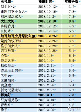 一直以来,单纯的小编都以为豆瓣是值得信赖的“意见领袖”,其对粗制滥造的作品从不手软,对大导演大演员的作品,更是铁面无私、严厉狠辣,比如周星驰的《新喜剧之王》(5.7分)、张艺谋导演的《长城》(4.9分)、吴宇森导演的《追捕》(4.5分)、徐克导演的《奇门遁甲》(4.4分)、梁朝伟、吴亦凡主演的《欧洲攻略》(3.6分)、刘德华主演的《天机 富春山居图》(2.9分),可谓一个比一个低!可是,再来看同样存在硬伤、备受质疑的的《大江大河》、《知否知否应是绿肥红瘦》,豆瓣却总能网开一面,分别打出8.8分、7.6分的高分。种种迹象表明,在影视行业这样一个资本密集型的行业中,如果想在影视圈获得好口碑、赢得更多的拥戴,一味地空谈情怀显然过于梦幻,最现实可行的做法是:一定得学会抱大腿,找个一个“好人家”,投一个“真豪门”!