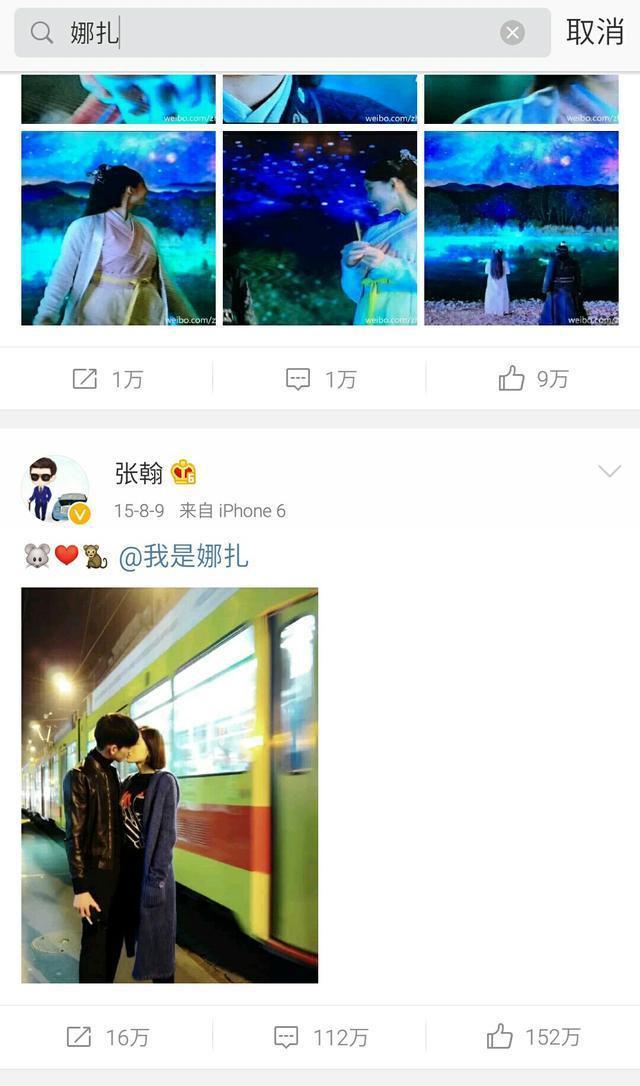去娜扎的微博搜张翰只有一条宣传《花少》的微博,连表白的微博都不见了!而在张翰额微博搜娜扎,表白的微博还在,但只有一条关于娜扎的微博了!