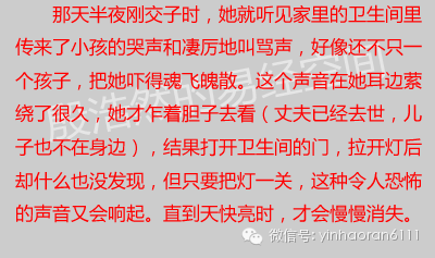 原来你感觉不到他们的存在,因为大病一场后,身体元阳虚弱,就能听到他们的声音了。这位女士说,后来她了皈依了佛门,天天在家念经、抄经,经常放生,将这些功德都回向给被她堕掉的几个阴灵。最近这一年来,不但再也听不到他们的声音了,而且身体也渐渐地好起来。