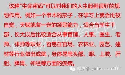 那么,什么又是“生命密码”呢?它是对一个人在受孕、怀胎、分娩的过程中,所受到宇宙星辰、地球等各种外界磁场作用结果的一种定性和定量的表述。