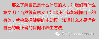 不同体质类型不仅决定了一个人的形体特征和心理特征,更决定了这个人对某些疾病的易感性和倾向性。例如阴虚型的人,平时怕热,经常感到手脚心发热,面颊潮红或偏红,皮肤干燥,口干舌燥,容易失眠,经常大便干结,这就是阴虚的表现。这些人大部分性格都比较外向好动,性情比较急躁。