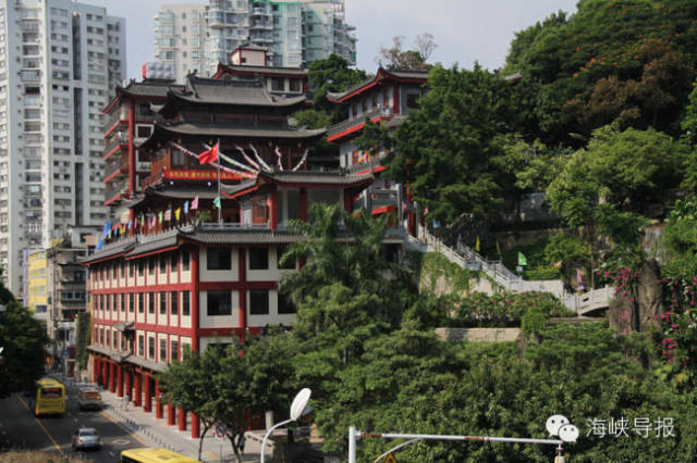 日光岩寺位于鼓浪屿最高峰日光岩,屡毁屡建,清同治年间,建圆明殿,祀弥勒,并在庙前建一八角亭,上挂“日光寺”匾。日光岩寺是一座精巧玲珑的寺庙,大雄宝殿、弥勒殿对合而设,是全国唯一。(欢迎关注海峡导报微信hxdbwx)