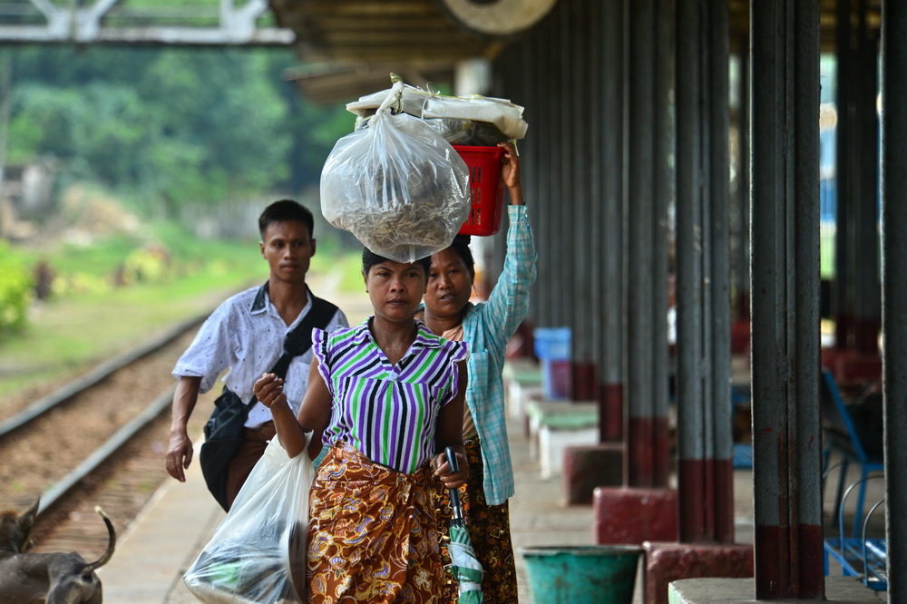 站在绿荫覆盖的小火车站,看着摇摇晃晃的小火车缓缓靠站,肩挑手提头顶东西的缅甸人,一手提着裙子,一手抓住拉手奋力爬上车厢,小火车鸣笛一声,喘着粗气去往下一个小站。