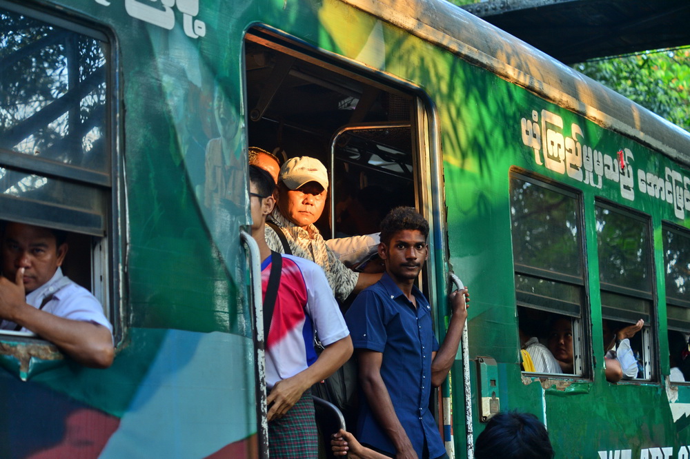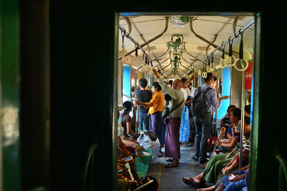 把这趟小火车称作是缅甸的缩影,一点都不为过。车厢里的人们大都带有热带人明显的特点:因为日晒强烈而皮肤黝黑,手掌心又明显比身上皮肤白。人群中总夹杂着肤色更黑的人,虽然也穿着笼基,嚼着槟郎,却很容易分辨出是印度人或孟加拉人,他们是1885年英国殖民缅甸后,从英属印度大量移民而来的。缅甸原本就有135个民族,再加上历史演变过程中形成多人种、多民族杂交混合,让如今的缅甸人带有更丰富的多样性,这在仰光所见的人群中更为明显。