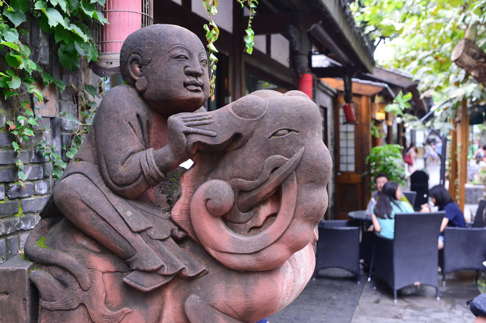 初去成都的人,会有当地朋友一番耳提面命:不要错过春熙路,那里美女云集,可大饱眼福还免费;要切(成都话“去”)锦里街,点他一堆美味小吃,什么夫妻肺片、老妈蹄花、担担面、三姐兔丁、开心凉粉什么的;吃撑了再切人民公园,寻个露天茶馆喝茶,坐在竹椅上剔牙打嗝消食摆龙门阵浪费时光。吧啦吧啦吧啦,朋友一口川普滔滔不绝说了许多必看的项目,似乎少“切”了一个,就不算来过成都。