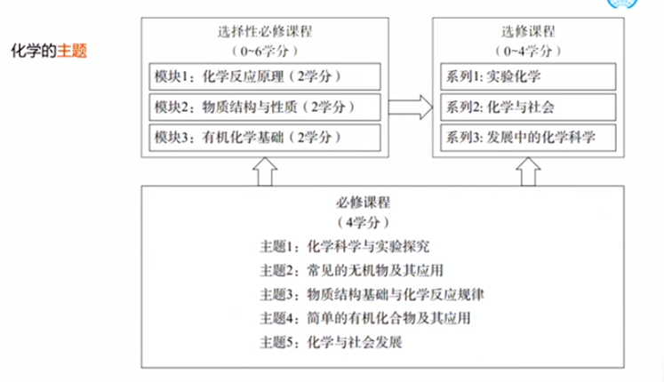 必修课程中有五个主题,以主题1“化学科学与实验探究”为例,它里面包含五点内容:化学科学的主要特征、科学探究过程、化学实验、科学态度与安全意识、学生必做实验。