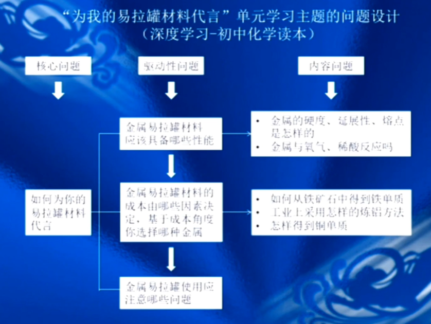 依然以初中化学读本为例,设计问题时,要提出核心问题、驱动问题和内容问题,它要解决学生在课堂上无话可说、无事可做的问题,一定要用驱动性的问题让学生活动起来。