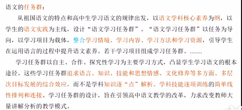 它特别强调语文实践,深度学习也是很强调迁移和创造;它整合了学习情境、学习内容、学习方法和学习资源,和深度学习所倡导的单元教学非常契合;学习任务群追求的不是学科知识逐“点”解析、学科技能逐项训练的简单线性排列和连接,而是语言、知识、技能和思想情感、文化修养等多方面、多层次目标发展的综合效应,刚才讲到,深度学习的特征之一联想与结构也是要求整体把握教学,综合起来看。