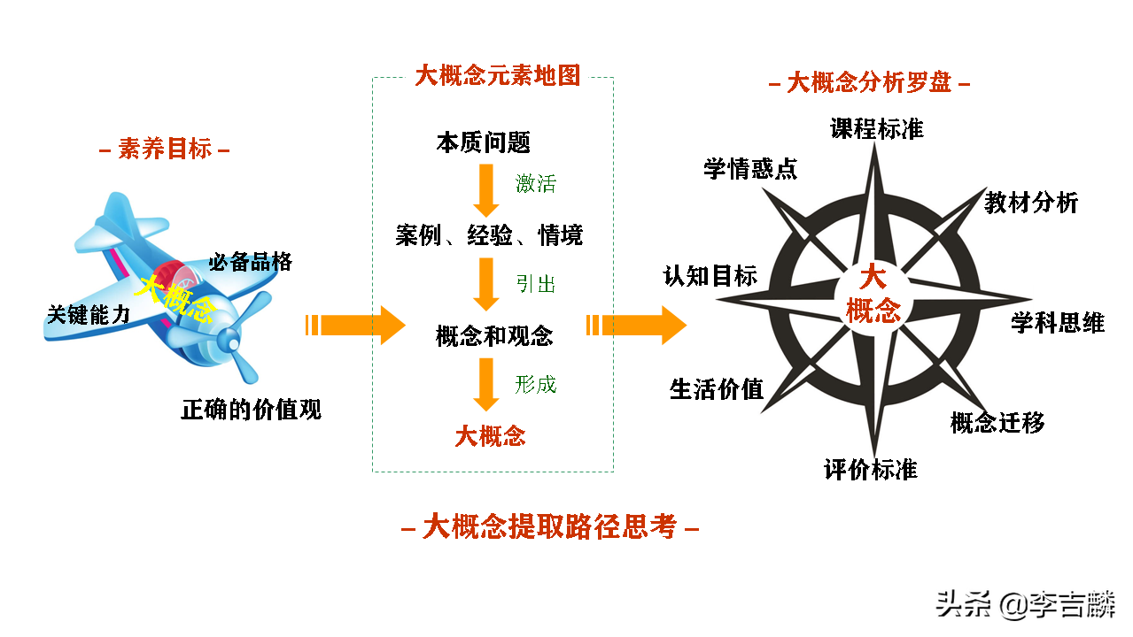 大概念呢?可以界定为反映一种上位思维方式的“概念、观念或论题”,“大”为之“核心”,是“高占位”或“上位”的一种价值观或讲专家思维。