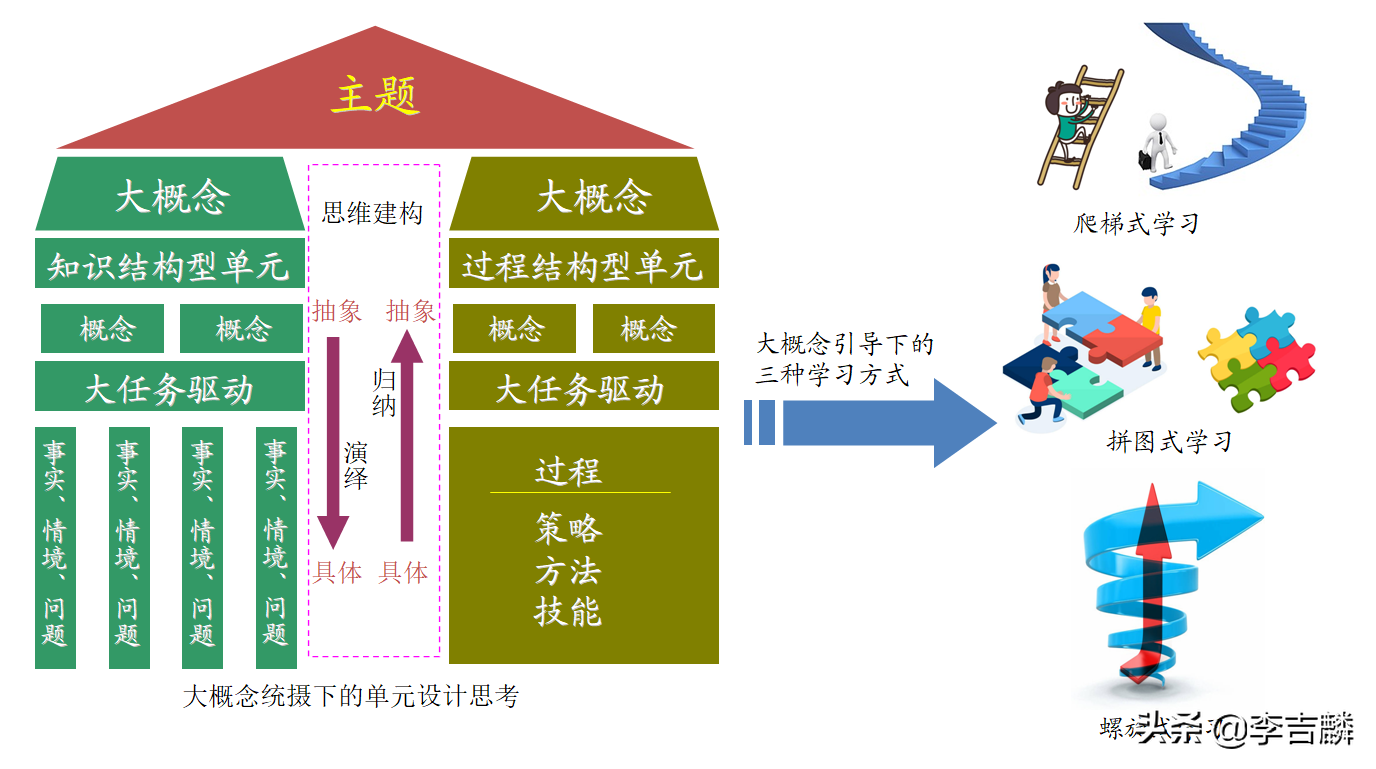 大概念引导下的三种基本认知建构学习方式:爬梯式学习、拼图式学习、螺旋式学习