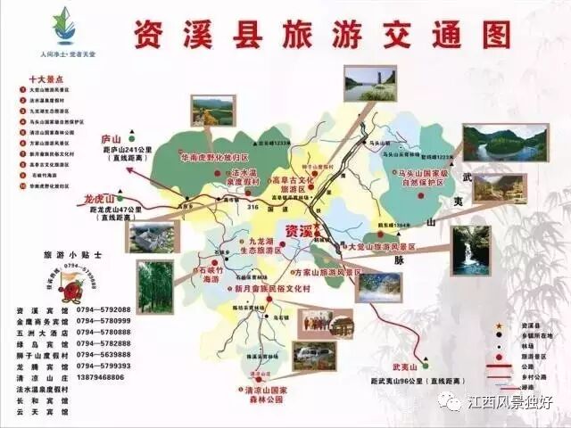 鹰潭方向:鹰瑞高速→金溪→资溪出口下→316国道→资溪县城→各景区