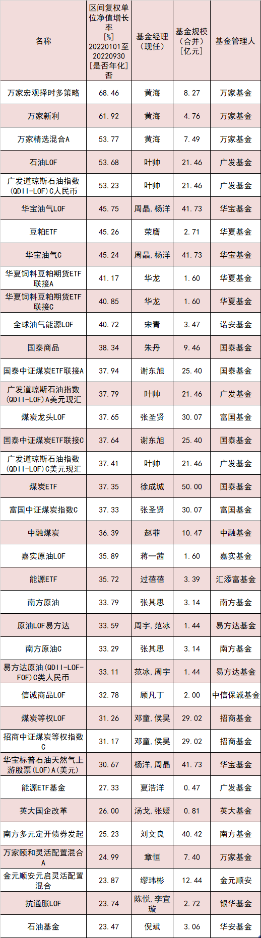 今年前三季度,华宝油气、诺安油气能源基金净值增长超过40%,国泰大宗商品、嘉实原油、南方原油、易方达原油人民币等多只QDII总回报超过30%。