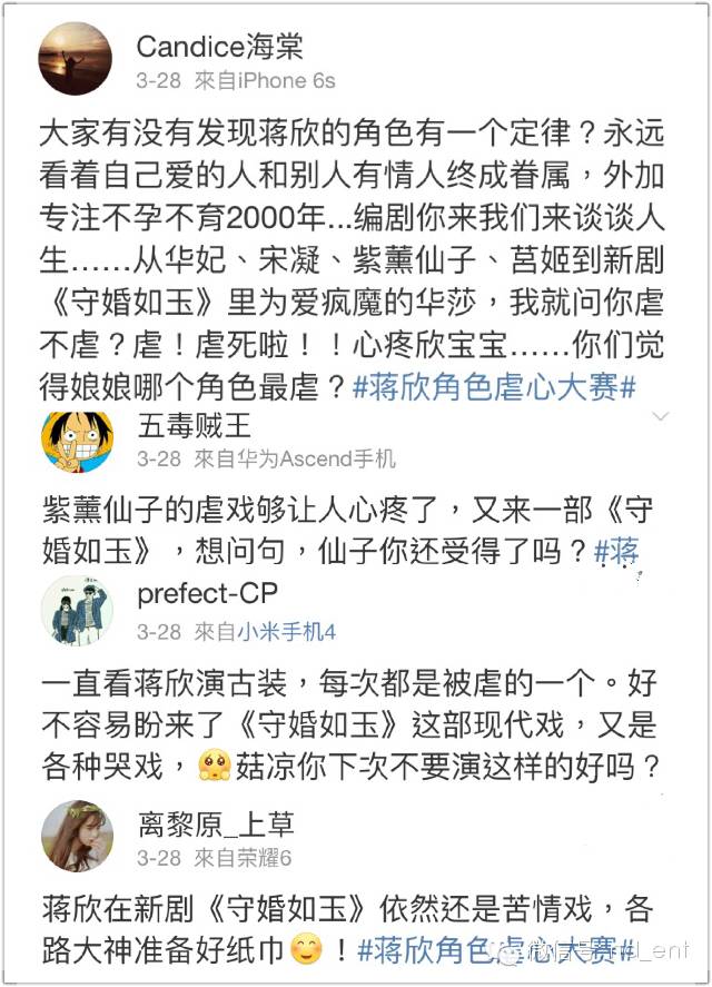 《守婚如玉》将于4月2日在安徽卫视、天津卫视首播,这回,“国民好媳妇”蒋雯丽要手撕“小三”蒋欣,没错,就是咱们的“华妃凉凉”、“苦逼”宋凝、紫熏仙子……“专注不孕不育2000年”、永远看着自己爱的人和别的男人终成眷属的蒋欣!!!
