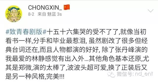良心敞亮地说,刚看到《致青春》剧版时娱乐君是拒绝的,因为有承载着书迷满满青春的原作和中规中矩的电影版在前,再来一个被拉长到40集的电视剧,确实让人有厌倦麻木之感。