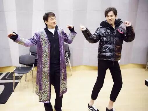 成龙大哥教迪玛希跳舞。