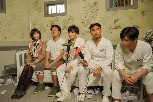 记者们在“病房”采访主创们
