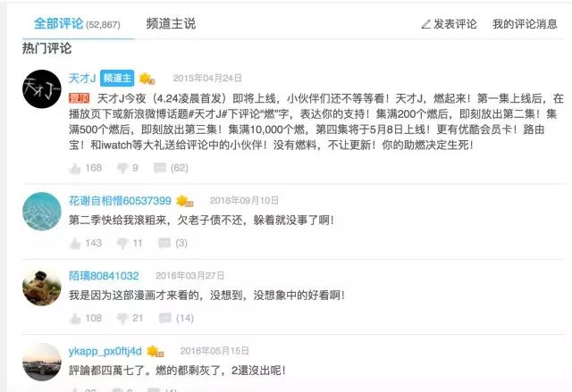 嗯,糅合了日剧的热血、中二、清新,也没把国内观众喜好的玛丽苏给漏掉,总而言之混搭在一起,满足你所有想象和需要。其实,再重新点开《天才J》的头几集,主创们还会在片尾曲吆喝“点击订阅支持!”让剧集走的更远,而如今再看评论区,每集下面都有3-6万的热闹评论,当中还有不少催更第二季、逼问导演续集去向和大喊“等不及”的留言,《天才J》真的在扎实向前哇。