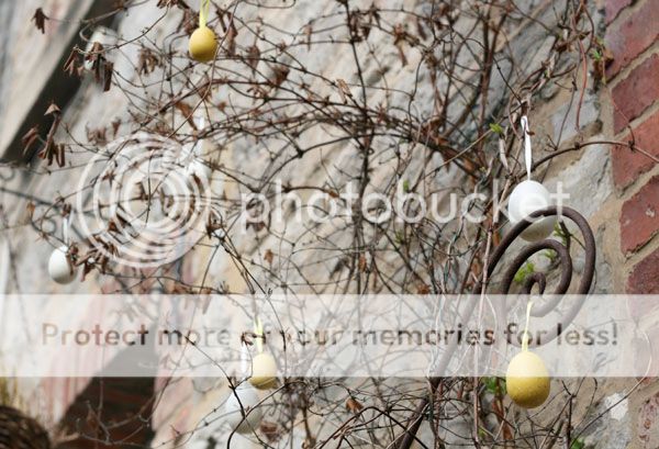 买的假鸡蛋挂上了金银花。看到冒出的新叶心里好踏实,起码又能活一年吧!