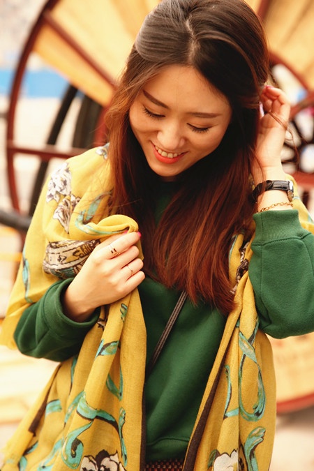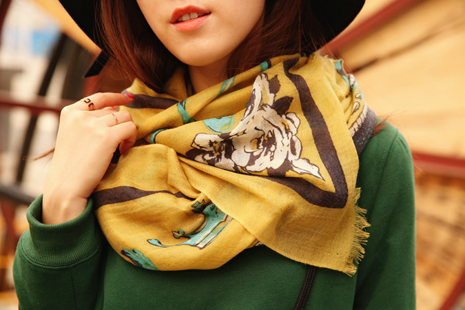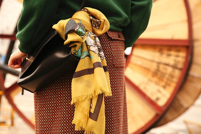 穿毛呢大衣的话,围巾就随意一点绕,怎么都好看,尤其是把喜欢的印花露在外面,颜色为什么这么美,是因为都是天然植物染料,很精湛的技艺染上去的,无化学,所以才特别鲜亮好看~