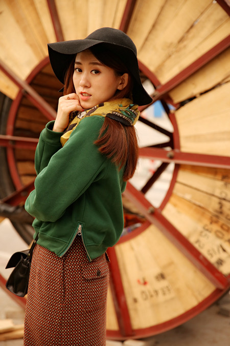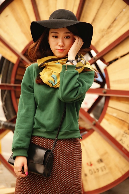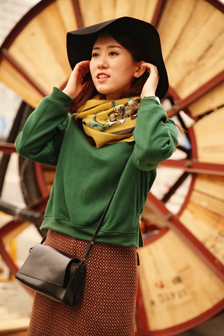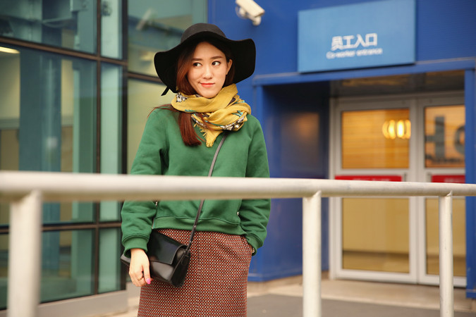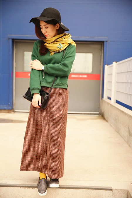 【百搭围巾look1 卫衣长裙小复古】