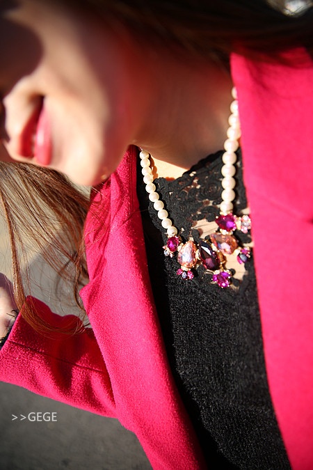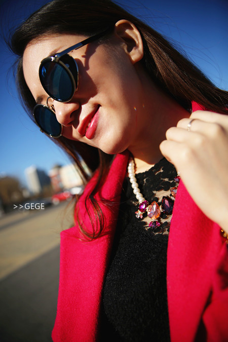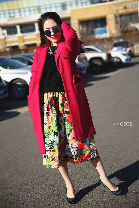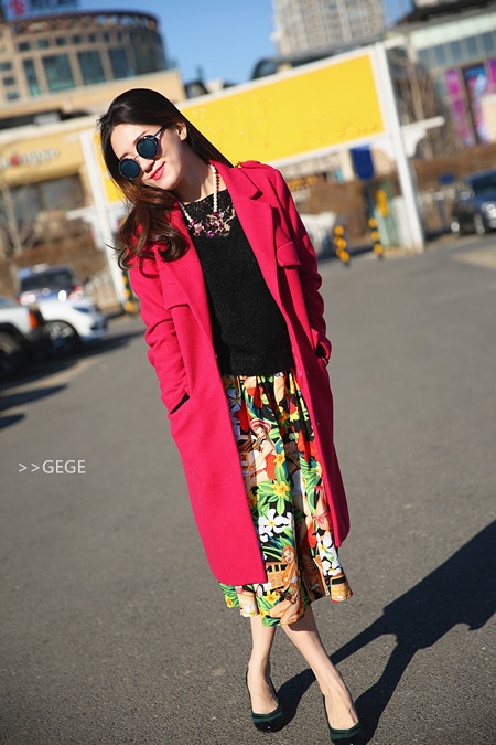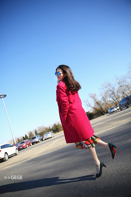 枚红色一直是我很喜欢的颜色,肤白的人穿,会更显干净有气质,小巧的人可以选择小面积玫红,比如围巾、鞋子,而大面积玫红也并没有想象中那么格格不入,搭配的好其实特别出挑。