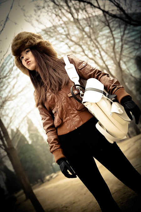 因为是牛皮嘛,手感不是软软嫩嫩的羊皮质地,也正因此有点硬朗的感觉,所以才为它搭配了机车小夹克,高个子的姑娘都不妨尝试下,一点点中性也很有感觉。
