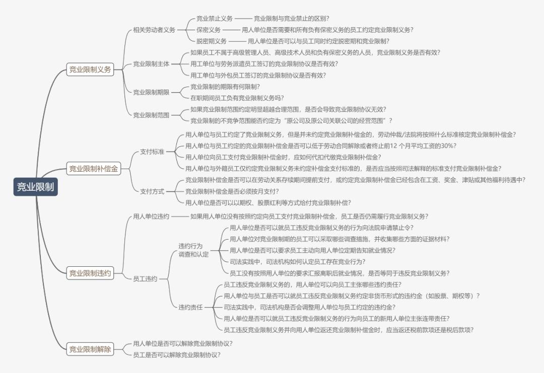 我们将竞业限制分为竞业限制义务、竞业限制补偿金、竞业限制违约和竞业限制解除四个方面绘制了竞业限制知识图谱,读者可将感兴趣的知识点回复在文后的评论区中,我们会在本月的后续推送中分享相关知识点和经典案例。下周文章发布的时间为周一、周三,敬请关注。