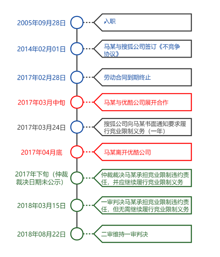 经查询本案二审判决书原文【(2018)京01民终5826号】,在二审阶段,双方对于马某应当承担竞业限制违约责任的一节事实和判决结果并没有争议,双方仅对竞业限制期限条款的效力存在争议,如果约定竞业限制期限中扣除仲裁和诉讼的审理期限的条款是有效的,那么马某将在二审判决生效之后继续履行一年的竞业限制义务;如果约定竞业限制期限中扣除仲裁和诉讼的审理期限的条款是无效的,那么竞业限制期限在2018年2月27日即期限届满,马某在此日之后可自由择业。