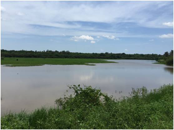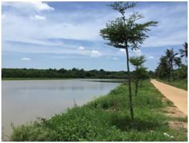 村里有小湖,旁边有万亩福湖,空气洁净,蓝天白云、绿树清水,环境优美。