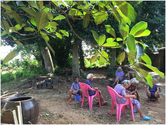 吴奶奶的老姐妹们经常聚在一起拉拉家常,一位老奶奶拿着家里成熟的果子给其他姐妹们一起分享,吴奶奶经常给我们说:都是住在附近一起的老姐妹,分享,不仅仅是果子,或是其他食物,更多的是相互分享彼此的关爱与快乐。